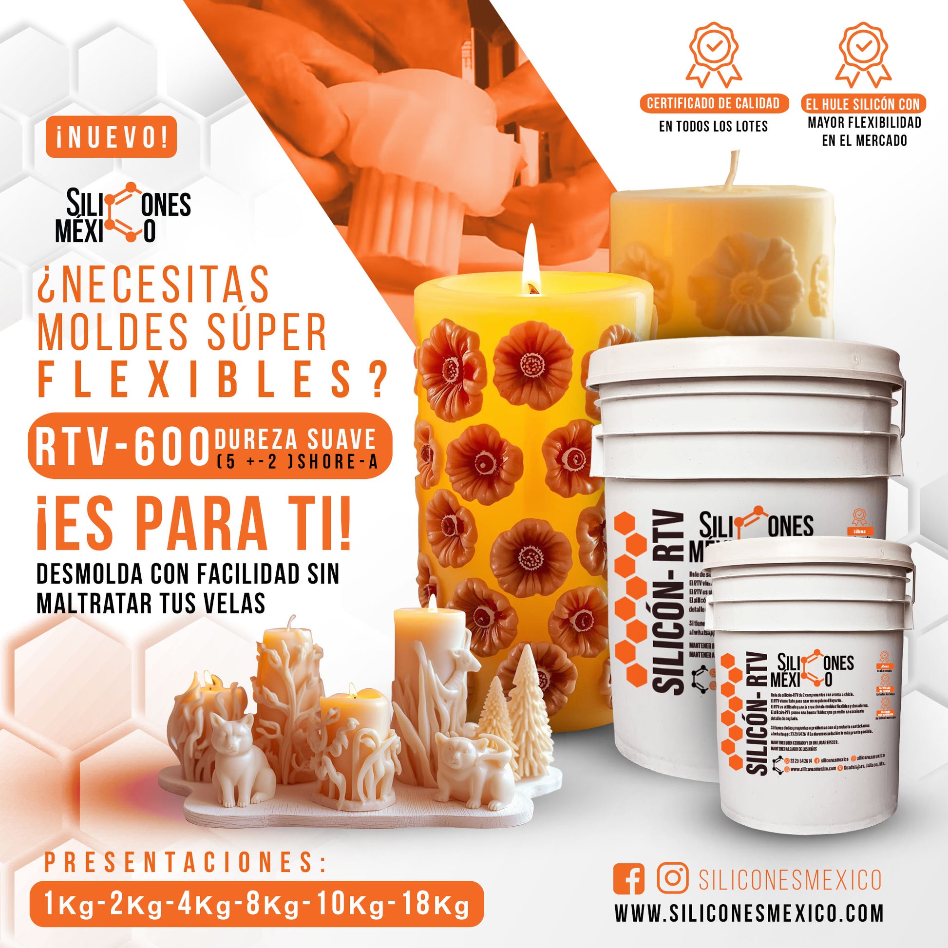 Hule de silicón de dos componentes de curado por condensación dureza -+5 (Suave), que vulcaniza a temperatura ambiente. recomendado para todo tipo de moldes (no alimenticios), ideal para moldes de velas, resinas, poliuretano, jabón, yeso, cemento y mucho más. (depende del tipo de pieza y técnica a usar es el silicón recomendado):